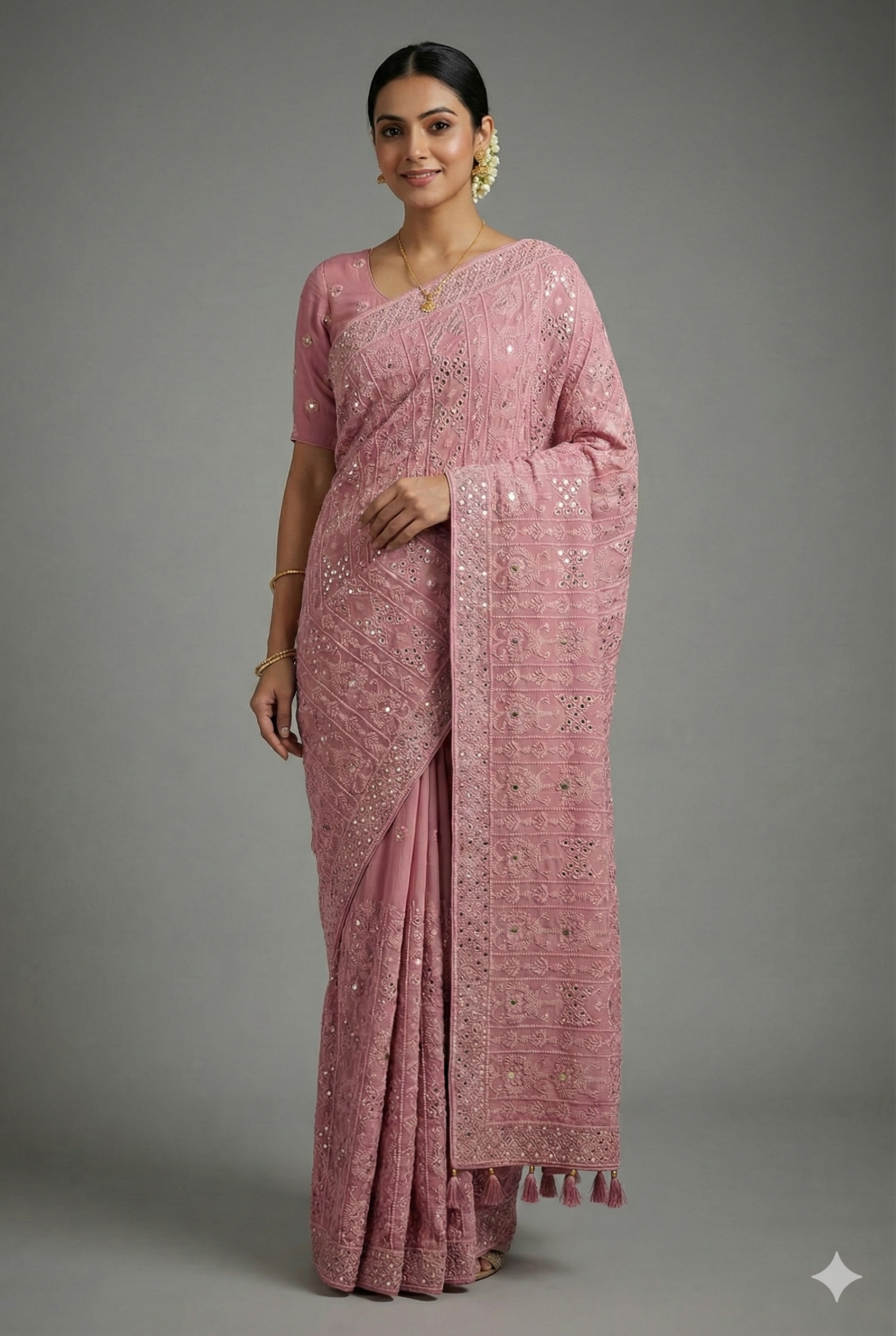 Fabric : Georgette Work : Lucknowi-Chikankari, Sequins, Mukaish