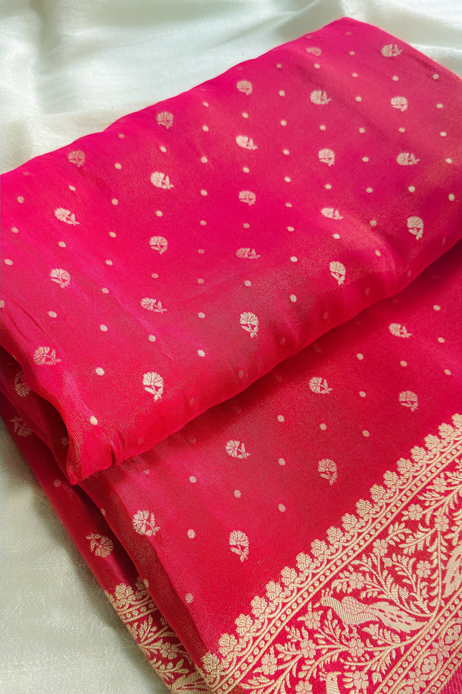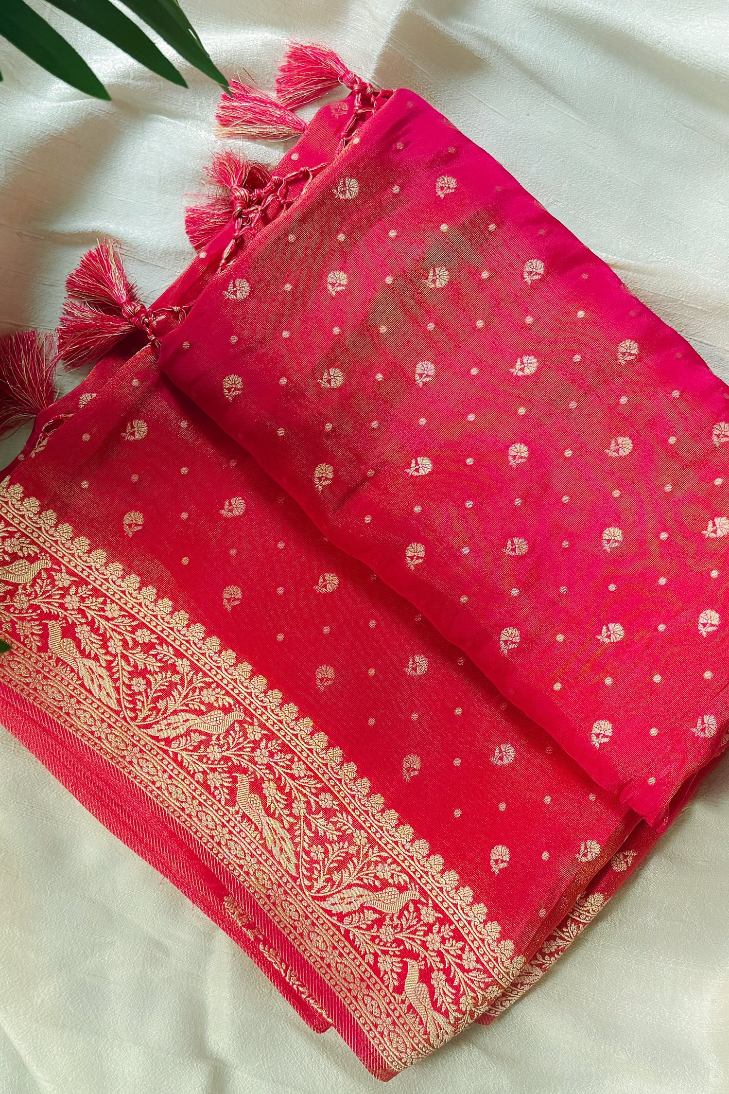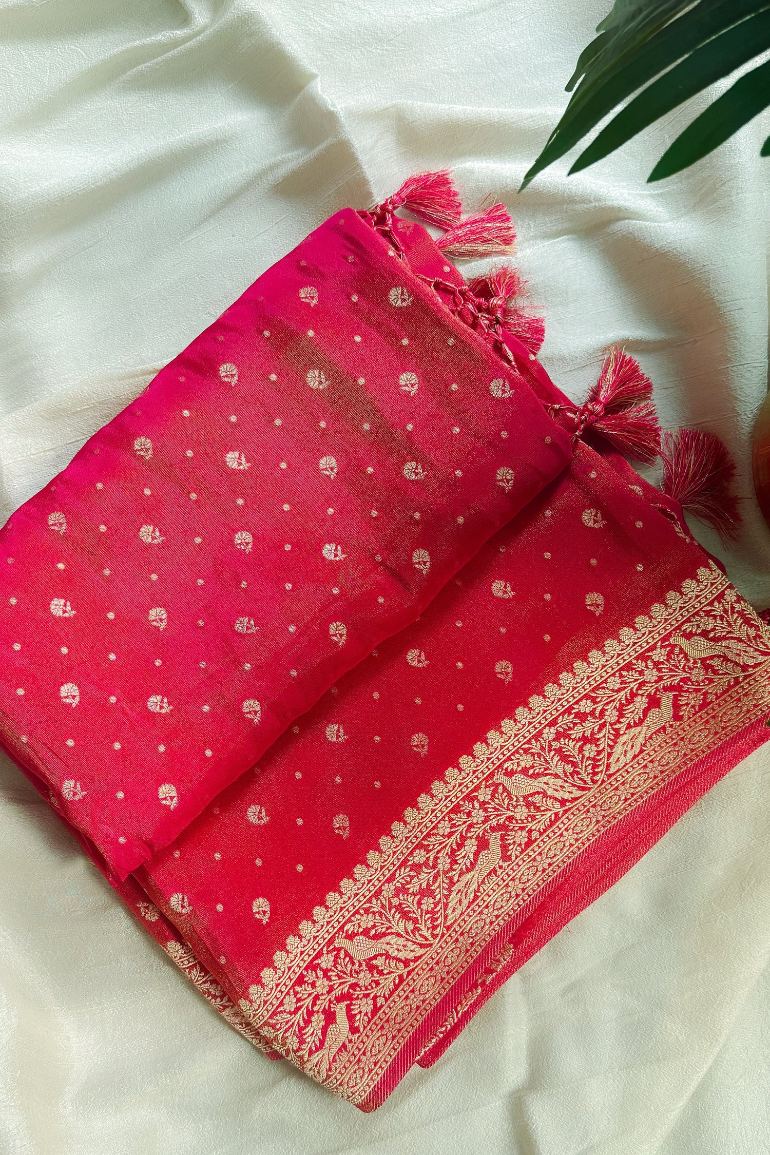 Product Code=PSAGH2021 Color=Pink Fabric=Tissue Work=Weaving, Cutdana, Beads, Zardosi Blouse_Color=Pink Blouse_Fabric=Silk Blouse_Type=Stitched Time to Dispatch=25 to 30 Working days