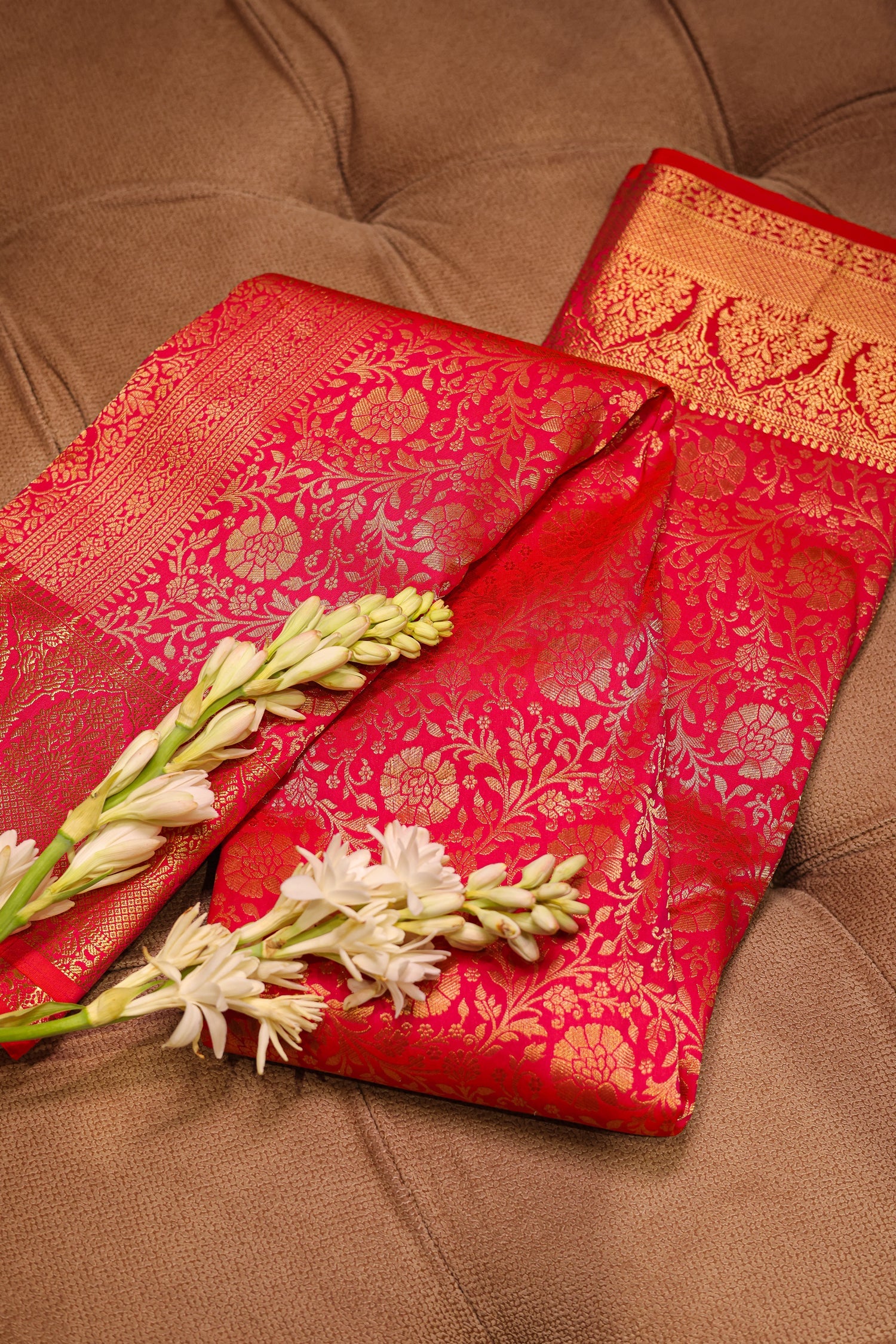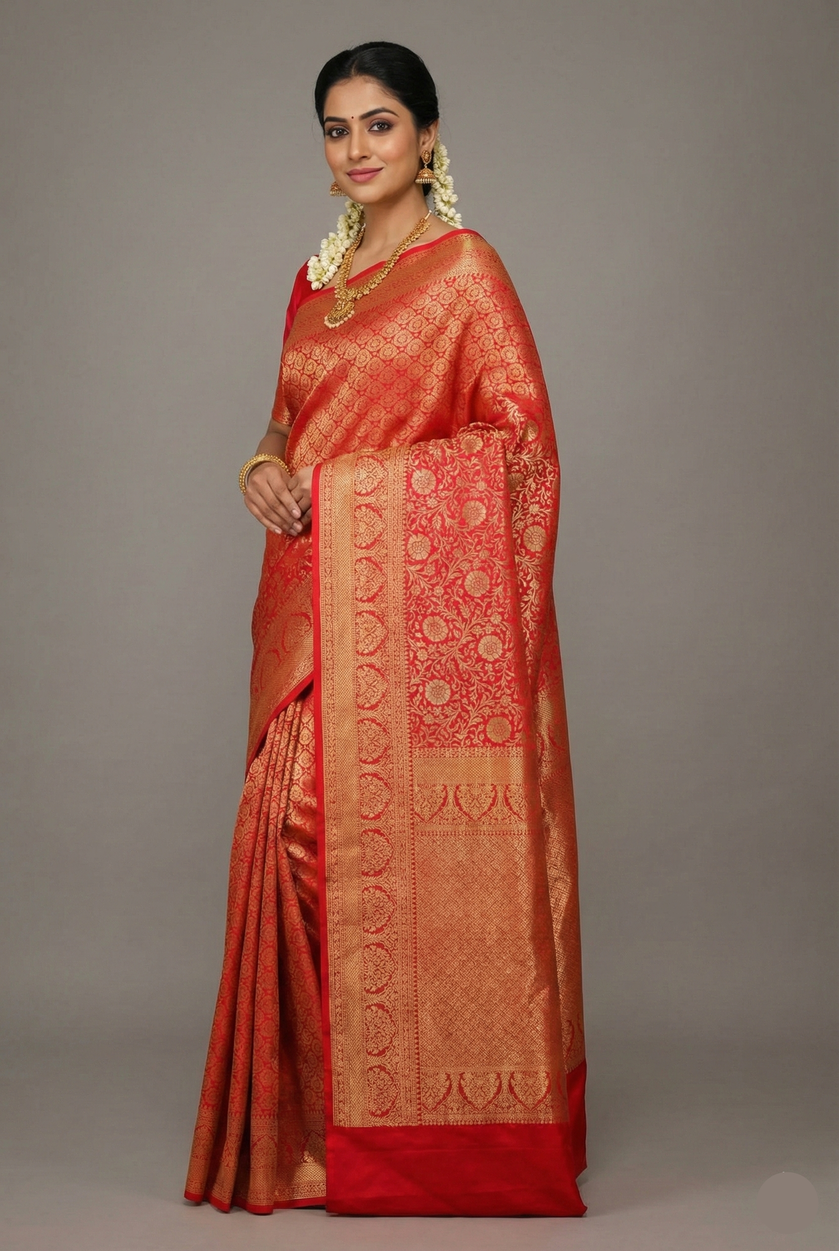 Celebrate timeless beauty with this classic pink Kanchipuram saree, exquisitely woven with traditional motifs that reflect rich South Indian craftsmanship. The soft yet vibrant pink hue adds a graceful charm, perfect for weddings, pujas, and festive occasions. Its luxurious silk texture drapes beautifully, giving you a regal and sophisticated presence. A heritage-inspired masterpiece that blends tradition, elegance, and refined artistry in every weave.