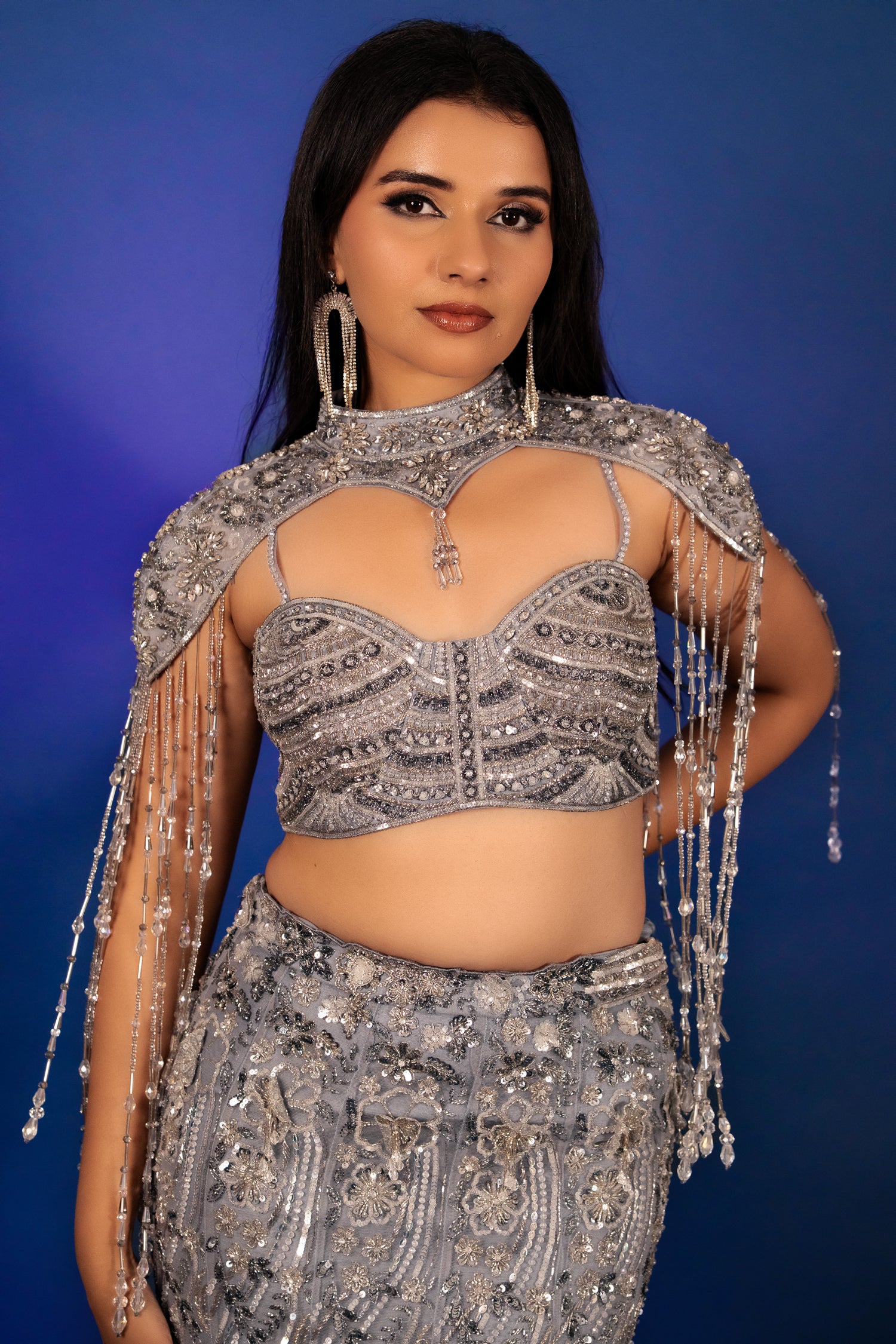 Blouse Color: Blue Blouse Fabric: Net