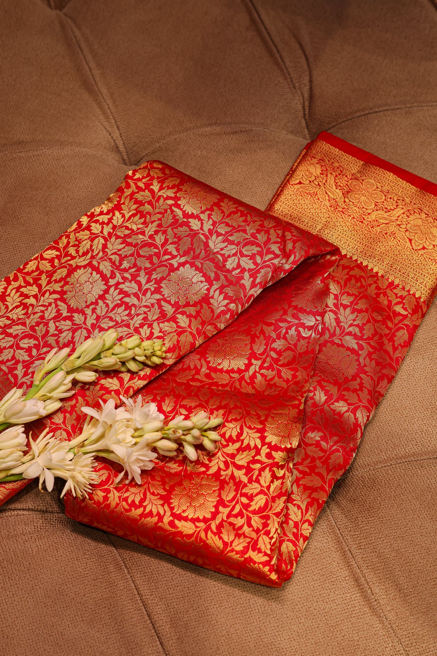 Blouse Color: Red Blouse Fabric: Kanchipuram-Silk