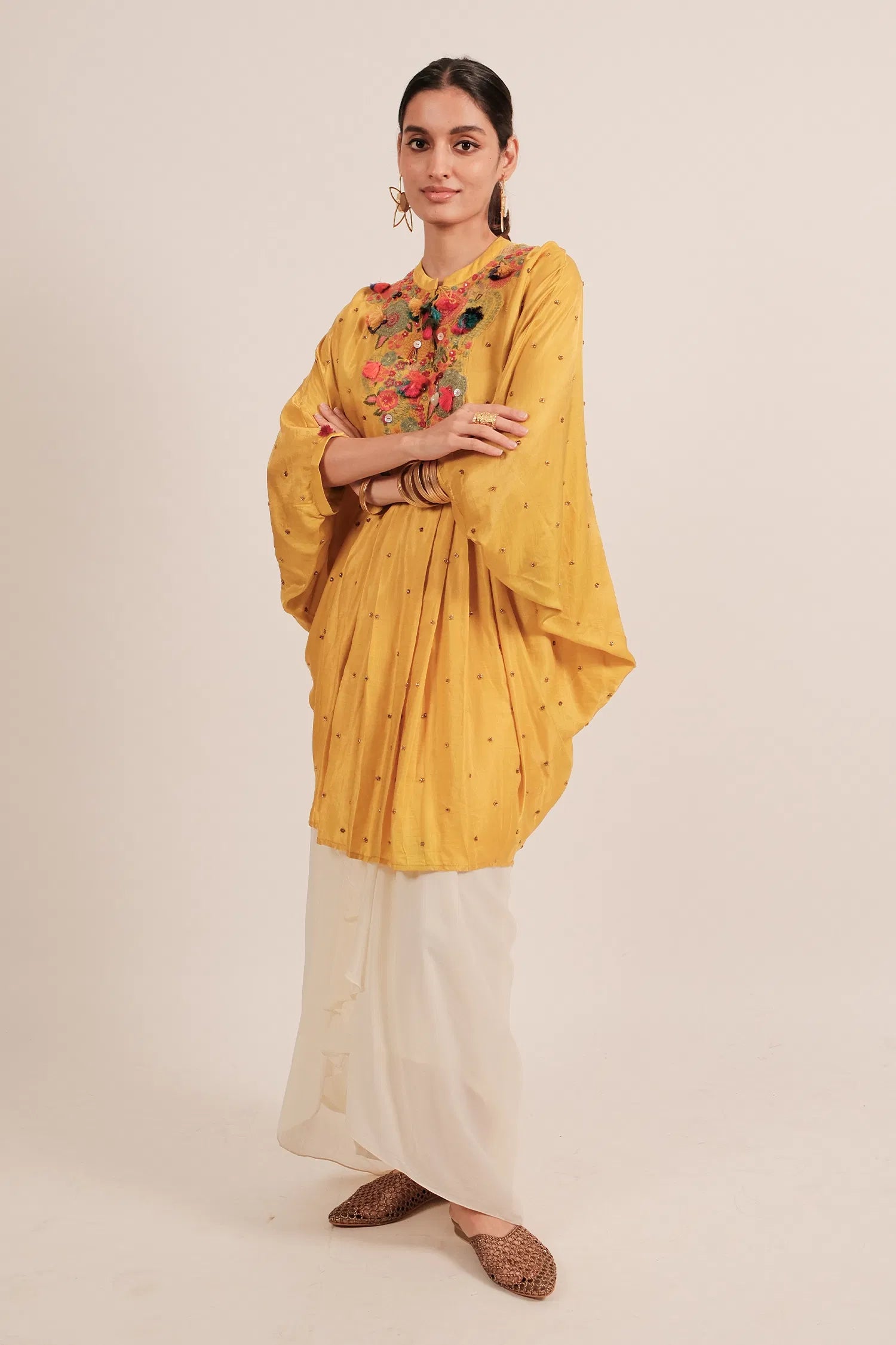 Radiate cheerful charm with our Yellow Silk Intricate Thread‑Embroidered Kaftan‑Style Top, a vibrant blend of color, craftsmanship, and comfort—ideal for warm days, festive gatherings, or elegant casual events.
